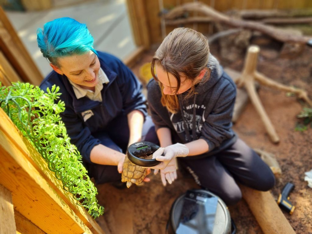 Every one of our land animals have a thermometer in their enclosure that records their highest and lowest temperature. We then have a chart of each animal’s preferred temperature to compare against. This helps us ensure that all our animals are at the perfect temperature at all times. We are regularly heating up and cooling down enclosures as the outside temperature changes to make sure all our animals are comfortable and happy.